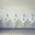 The blue lines represent people standing at white urinals. The blue lines at the back are people leaving.